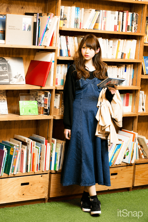 カジュアルなデニム素材でも、胸元のリボンのおかげでかわいさがアピールできちゃいます。中にはニットを着て、防寒対策も忘れずに♪