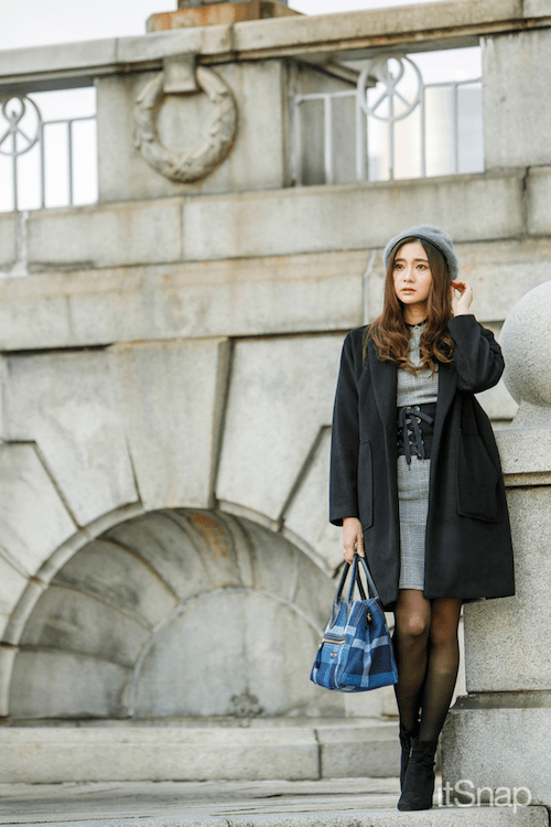 全身をグレーでまとめたおしゃれ上級者向けワントーンコーデ。かわいらしさの残るワンピースも、シックな色なら落ち着いてみえるんです♪