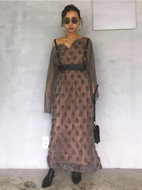 適度な肌見せができるワンピースで、ちょっぴりセクシーなデートコーデの完成!おしゃれなバーに行くときなどに最適なコーディネートです。
