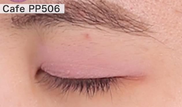 エチュードの「ルック アット マイアイズ ジェラート」は、溶け込むようなシルキーマットな発色で心地よく目元にフィットするアイテム。「PP506」は、女性らしくフェミニンな印象に。