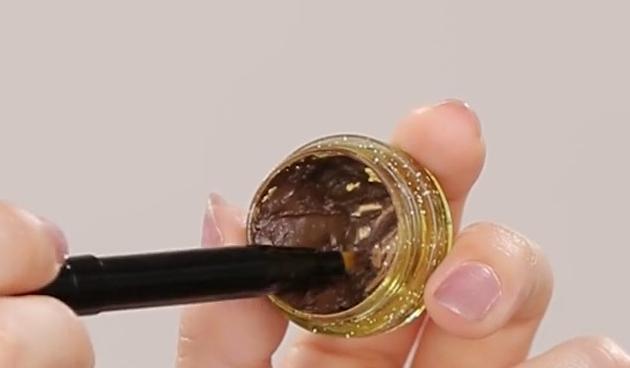 ペースト状になるまでよく混ぜます。なじんだら、筆にとってアイライナーとして活用しましょう。アイシャドウのナチュラルさを活かした自然なアイライナーに変身。