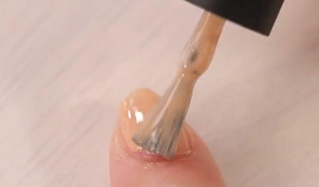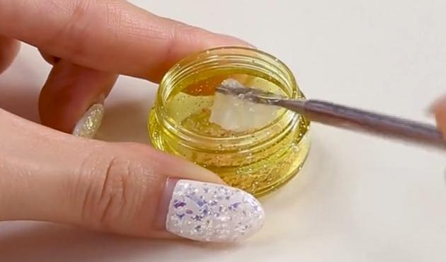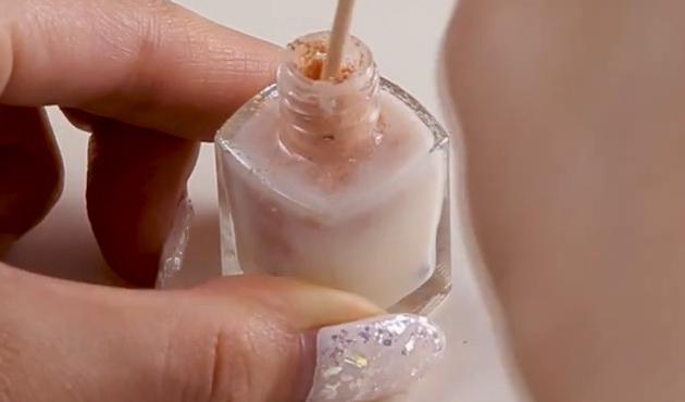 アイシャドウをこぼさないようにクリアポリッシュのケースに入れます。