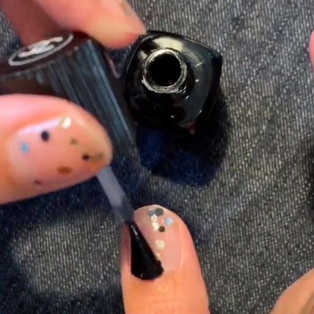 好みの量のラメを爪にのせたら乾かしていきましょう。最後にトップコートを上から重ねて塗ってコーティングして完成です!