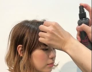 今回はオイルはN.のオイルを使用します。100円玉程度の量を手に取り、髪全体にもみこみます。前髪はお好みでカールさせた後、分け目をナチュラルにするためスプレーをします。これで、スタイリングの完成です☆