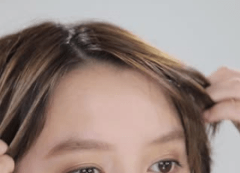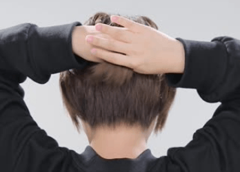 後頭部の髪の上部をヘアクリップで持ち上げ、ブロッキングします。
