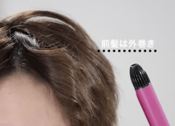 顔周りを外巻きに巻いていきます。そうすることで小顔にみせることができちゃうんです☆
