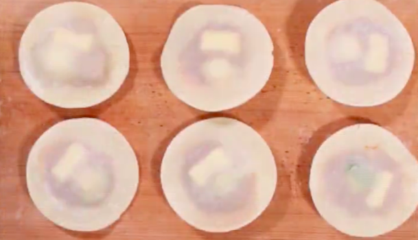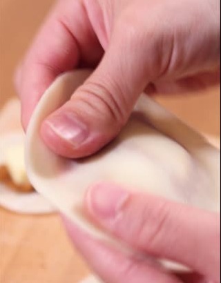 皮で蓋をするように包みます。しっかりとふちを重ね合わせてください。