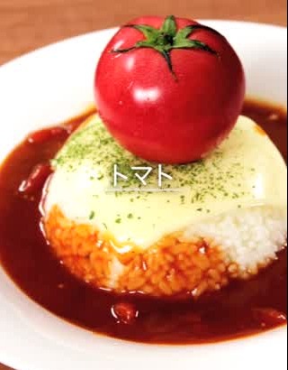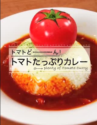 ご飯を囲むようにカレーを流し込み、最後にフレッシュトマトをどん!!