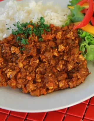 最後に全体を混ぜ、醤油を加えて味を整えてください。レンジでチンするだけ!本格的キーマカレーの完成です。