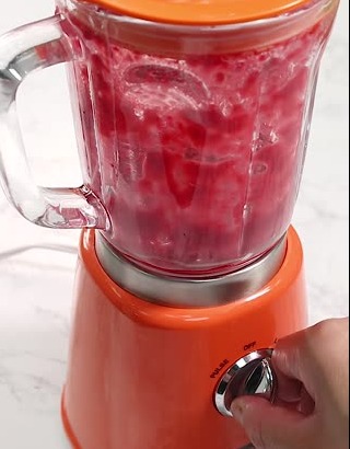 ミキサーにビーツ、水、レモン汁を入れてかくはんし、ペースト状にします。