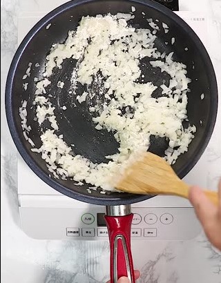 フライパンにオリーブオイルを入れ、たまねぎ、おろした大根を炒めます。続いて塩、こしょう、チューブしょうが、薄力粉を加えましょう。