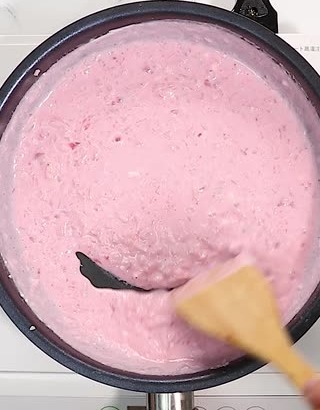 手順2に牛乳、ビーツを入れて中火で一煮立ちさせ、カレー粉、ガラムマサラを加えます。全体がピンク色に染まっていく感じがたまらないっ♡