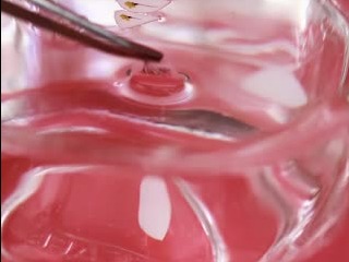 100円ショップのキャンドゥで手に入る「しずくウォーターネイルシール」を切り取り、水が入った平たい容器に浮かべます。