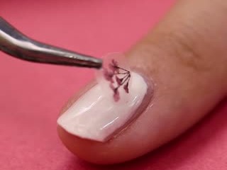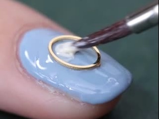 輪っかになったパーツを爪の中央にのせ、その中心部分に色を塗ります。