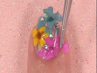 押し花の上からトップコートを塗り、お好みのパーツをのせてください。