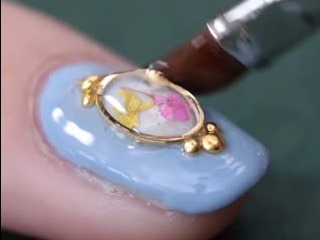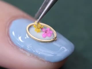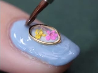 ジェルネイルキットをお持ちなら、ブローチの中にお花を閉じ込めたような押し花ネイルはいかがでしょうか?