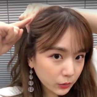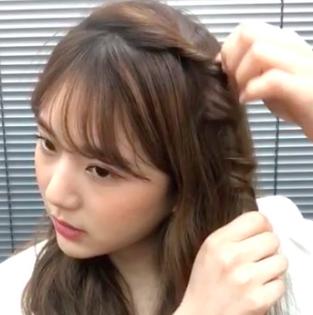 まずは、髪の毛を高めの位置でツインテールにしていきます。このとき、ガッツリと顔まわりの髪を上にまとめるのはNG。