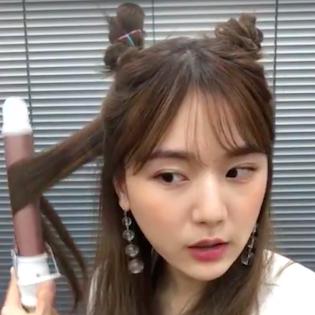 両方ともお団子ができたら、毛先を中心にアイロンで巻いて完成です♡