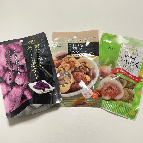 今回はダイソーで購入できるヘルシーおやつを3つご紹介しました。