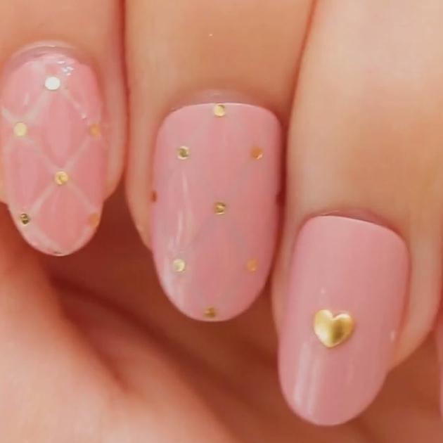 ジェルを重ね塗りするだけでできるピンクのキルティングネイル。ポイント使いがおすすめです!