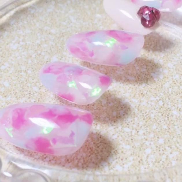 まるで天然石みたいなデザインのマーブル模様はは乙女心をくすぐるキュンネイル♡淡い色を使ったウォーターマーブルネイルは指先が優しい印象に早変わりしちゃいます。