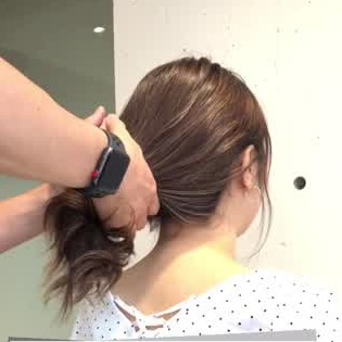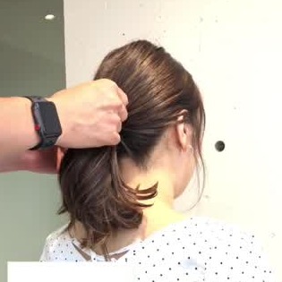 まずは、ポニーテールを低い位置で結びます。