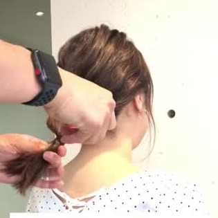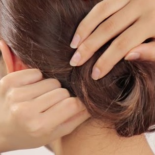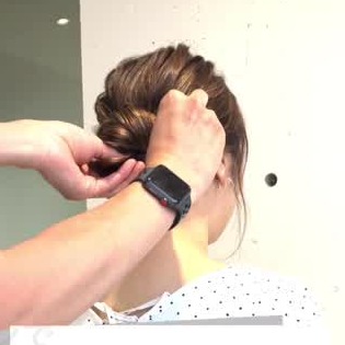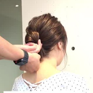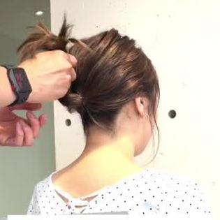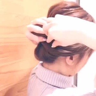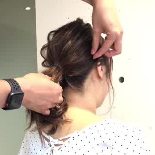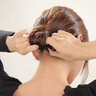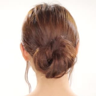 ポニーテールをねじり、お団子をつくります。