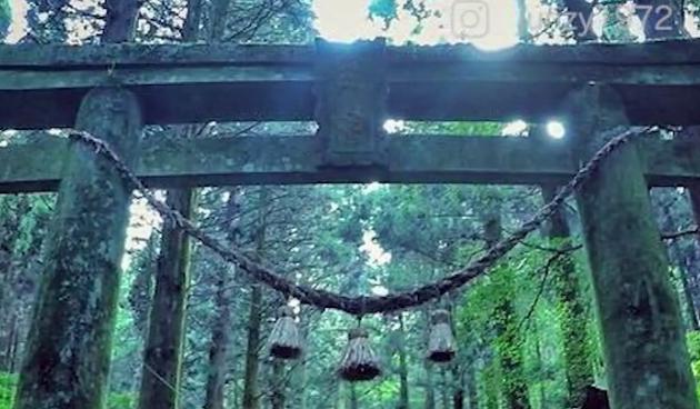 石段続きの道にある鳥居。大自然の中で神秘的な空間を楽しめますよ。