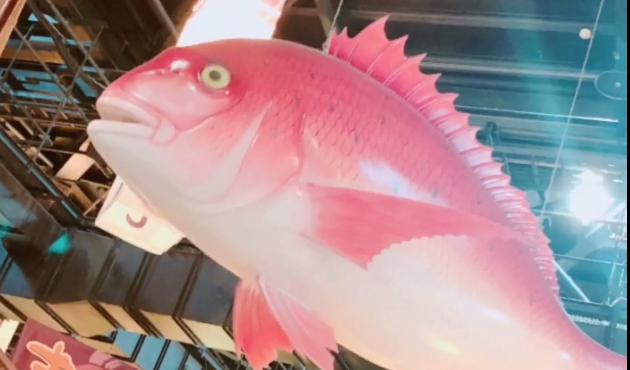 入って目につくのは、天井からつるされた魚のオブジェ。市場に来た実感がわきますね♪