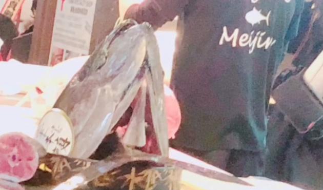 市場では、目の前でまぐろの解体ショーが行われることも。
