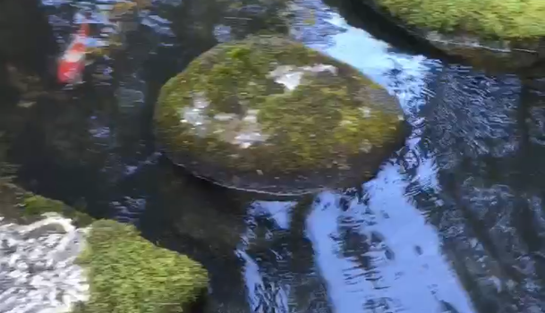 庭園内には大きな池があり、たくさんの鯉が悠々と泳いでいます。