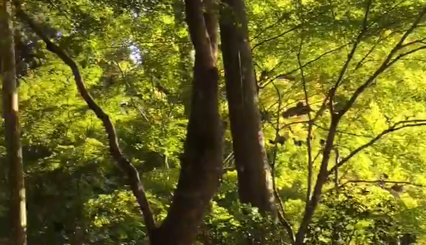 初秋の時期は、青紅葉と緑色の苔蒸した庭園との一体感がとても素敵。木々の紅葉を通して差し込む木漏れ日の中、庭園を鑑賞できます。三千院の中には多くの古い建物があり、その中には国宝や重要文化財などの展示物を観ることができます。