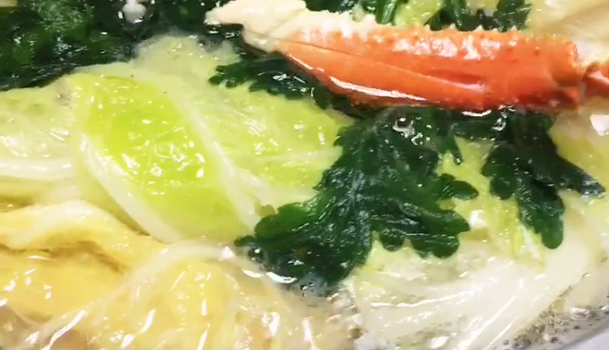 松葉ガニのお鍋は、大きい松葉ガニがたくさん入っています。寒い冬にぴったりで身もぷりぷりしていてとっても甘い♡
