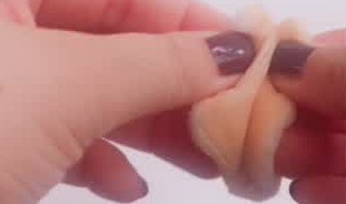 顔にのせる前に、パフを折りたたんでなじませます。さらに腕にトントンすることで粉を落とし、厚塗りを防ぐことができますよ◎