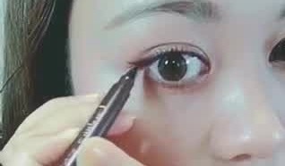 ブラウンのアイライナーで、目尻のキワをやや長めに引きます。