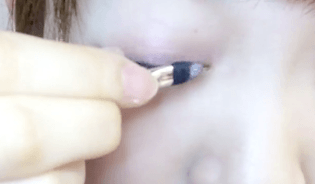 次に、付属のチップを使って下まぶたの目尻側半分にも左上の色を塗っていきます♪
