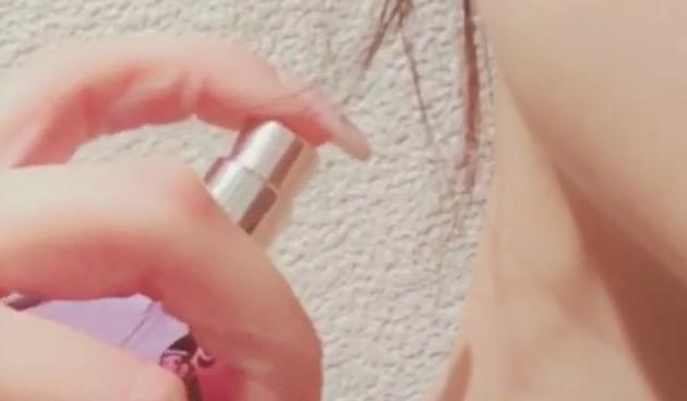 スプレータイプの香水をふんわりと香らせたいときは、「空中にワンプッシュ」してから、その部分をくぐるようにして付けるのがおすすめ。