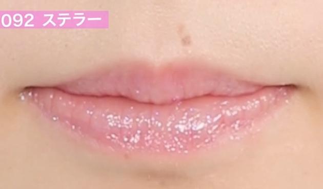 グラマラスなボリュームと煌めきを演出してくれる「092 ステラ―」。1本使いだとナチュラルに、リップと重ね塗りすると唇の発色がUPしますよ◎