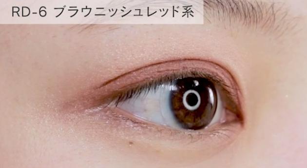 大人気「RD-6 ブラウニッシュレッド系」は、深みのあるブラウンレッド。少しくすんだカラーなので大人っぽく仕上がりますよ。話題のチェイボーグメイクにも◎