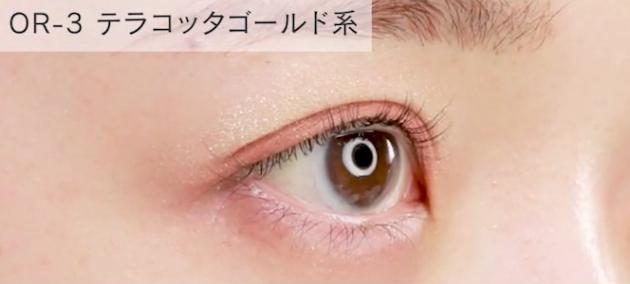 大人気「OR-3 テラコッタゴールド系」は、ゴールドにきらめくテラコッタオレンジ。少し明るめのオレンジなので、夏メイクに活躍しそうですね♪