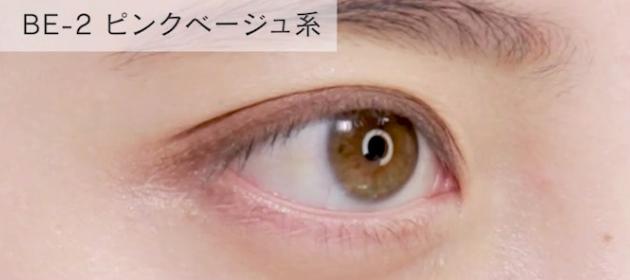 大人気「BE-2」は、ピンクみのベージュ。肌馴染みのいいピンクならふんわりした印象になるので、派手すぎず上品なピンクメイクが完成しますよ。