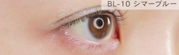 「BL-10 シマーブルー」は、透け感のあるブルー。グリッターが加わりことでシルバーよりの発色になり、洗練された大人のアイメイクに。