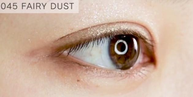 「045 FAIRY DUST」は、輝くパーリーホワイト。色はつかないラメシャドウなので、他のアイシャドウと重ねて使っても◎