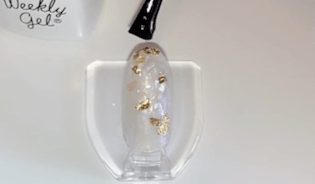 ネイルが乾く前に、好きな位置にシェルフレークをピンセットを使ってのせていきましょう。