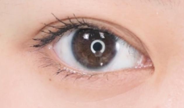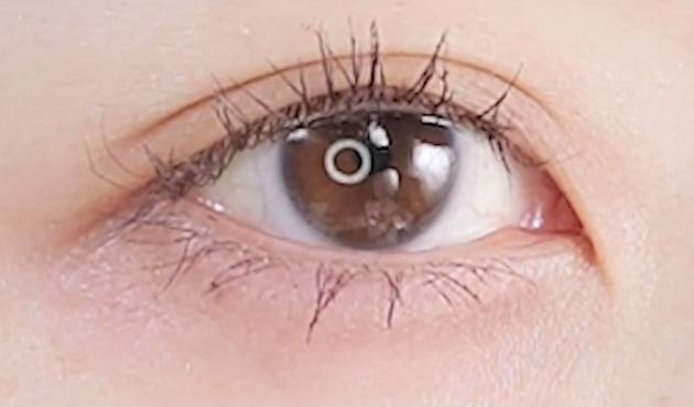 そのあと中央のまつげにマスカラを塗っていきます。ジグザグせず、上に向かってささっと!