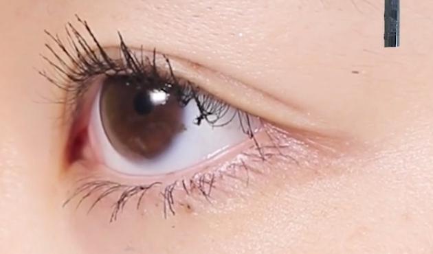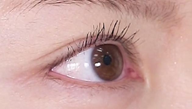 目頭側はまつげが短かったり細かったりするので、根元にブラシをぐっと押し当ててジグザグと、毛先はジグザグせずにスッと抜くようなイメージでマスカラを塗りましょう。