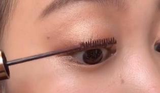 続いて目尻側のまつげにもマスカラを塗っていきましょう。根元からまつげを上げるように塗ってくださいね。バランスを見て毛先にだけ重ね塗りしても◎