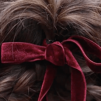 大きめの飾りがついたヘアゴムやバレッタをつけるとGood。