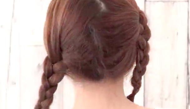 髪の毛を真ん中でふたつにわけ、それぞれ三つ編みします。