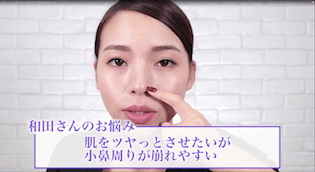 和田さん。が理想とするお肌のタイプはツヤ肌だそう。しかしツヤ肌メイクをすると時間が経つにつれ、小鼻周りの皮脂崩れに悩まされているんだとか。